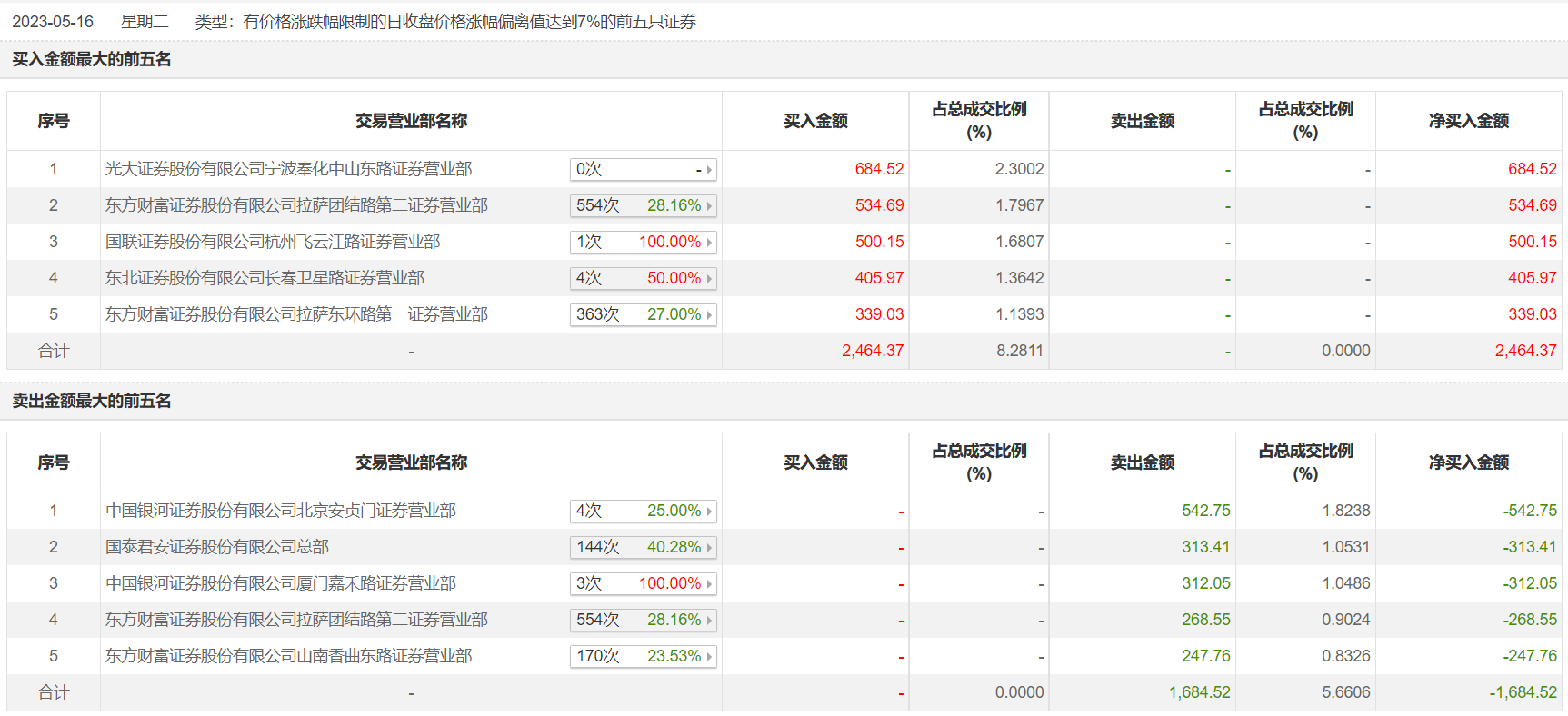 具体来看,光大证券宁波奉化中山东路证券营业部、东方财富证券拉萨团结路第二证券营业部分别买入684.52万元、534.69万元;中国银河证券北京安贞门证券营业部、国泰君安证券总部分别卖出542.75万元、313.41万元。