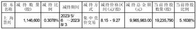 ● 截至2023年8月3日,上海景兴持有莎普爱思无限售条件流通股19,235,790股,占莎普爱思总股本的5.1638%。