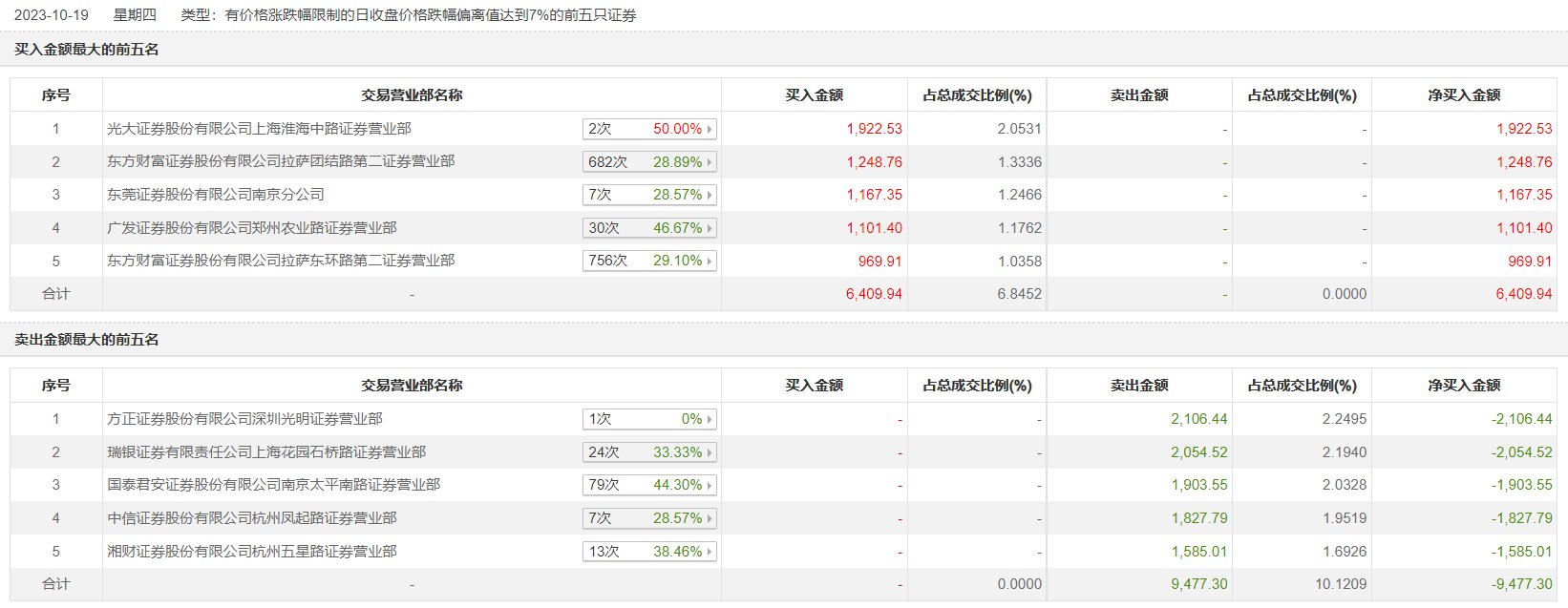具体来看,知名游资现身龙虎榜,作手新一(国泰君安证券股份有限公司南京太平南路证券营业部)净卖出1903.55万元。此外,方正证券深圳光明证券营业部、瑞银证券上海花园石桥路证券营业部分别卖出2106.44万元、2054.52万元;光大证券(维权)上海淮海中路证券营业部、东方财富证券拉萨团结路第二证券营业部分别买入1922.53万元、1248.76万元。