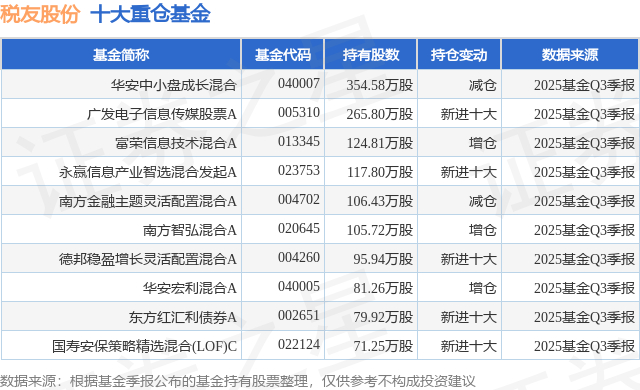 重仓税友股份的前十大公募基金请见下表: