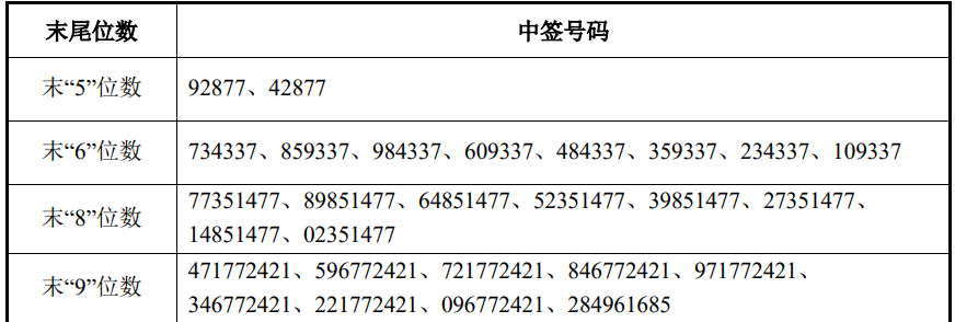 8月14日公告,凡参与新23转债网上申购的投资者持有的申购配号尾数与下述号码相同的,则为中签号码。中签号码共270944个,每个中签号码只能认购1手(1000元)新23转债。