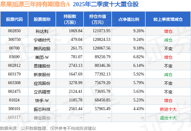 根据2025基金半年报公募基金重仓股数据,重仓该股的公募基金共58家,其中持有数量最多的公募基金为泉果基金的泉果旭源三年持有期混合A。泉果旭源三年持有期混合A目前规模为112.01亿元,最新净值1.0256(9月19日),较上一交易日下跌0.66%,近一年上涨68.21%。该公募基金现任基金经理为赵诣。