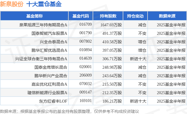 根据2025基金半年报公募基金重仓股数据,重仓该股的公募基金共58家,其中持有数量最多的公募基金为泉果基金的泉果旭源三年持有期混合A。泉果旭源三年持有期混合A目前规模为112.01亿元,最新净值1.0402(9月22日),较上一交易日上涨1.42%,近一年上涨71.65%。该公募基金现任基金经理为赵诣。