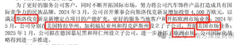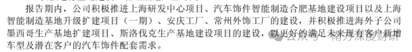 其次就是国内基地和海外基地的产能释放。2021年、2023年,公司分别进行了11.8亿的定增和11.5亿的可转债进行募资扩产。其中,可转债中的新增30万仪表板总成、20万套门内护板总成、50万套座舱系统一体化集成产品均在2024年、2025年上半年已投产。目前进度也是符合预期进行。