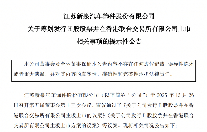 新泉股份称,公司将充分考虑现有股东利益和境内外资本市场的情况,在股东会有效期内选择适当的时机和发行窗口完成本次发行上市。截至目前,除本次董事会审议通过的相关议案外,其他关于本次发行H股并上市的具体细节尚未最终确定。