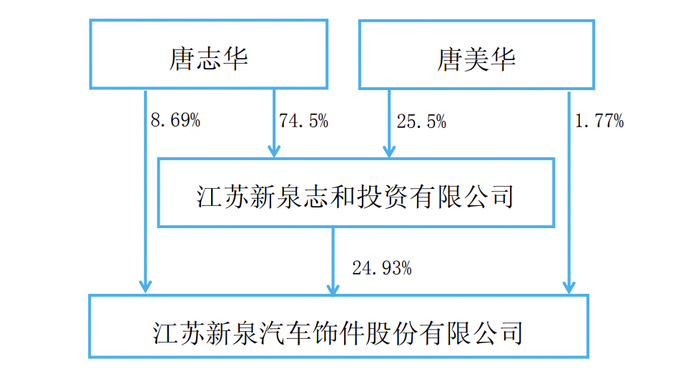 本次权益变动后,公司实际控制人由唐敖齐、唐志华变更为唐志华。唐志华直接持有公司股份4432.41万股,占公司总股本的8.69%,通过新泉投资间接持有公司总股本的18.57%,合计持有公司总股本的27.26%,为公司实际控制人;唐美华直接持有公司股份905.37万股,占公司总股本的1.77%,通过新泉投资间接持有公司总股本的6.36%,合计持有公司总股本的8.13%。其中,新泉投资的股权结构为:唐志华和唐美华分别持有74.50%和25.50%股权。