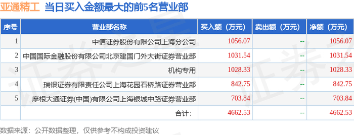 11月3日亚通精工(603190)龙虎榜数据:机构净买入1028.33万元