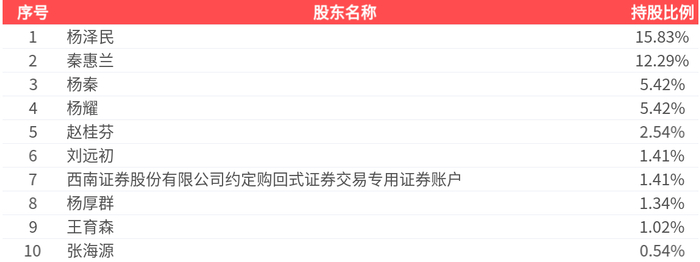 公司股东户数为2.70万户,前十大股东持股数量为1.57亿股,占总股本比例为47.21%,前十大股东持股情况如下: