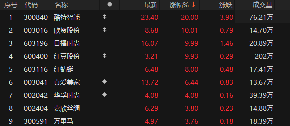 纺织服饰板块午后拉升 日播时尚触及涨停