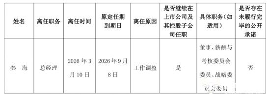 公告显示,因工作调整原因,秦海申请辞任公司总经理职务。秦海出生于1968年,今年58岁,其总经理一职的原定任期到期日为今年9月8日,也就是说,秦海是提前半年左右卸任的。而接任秦海总经理一职的为杨照兵。