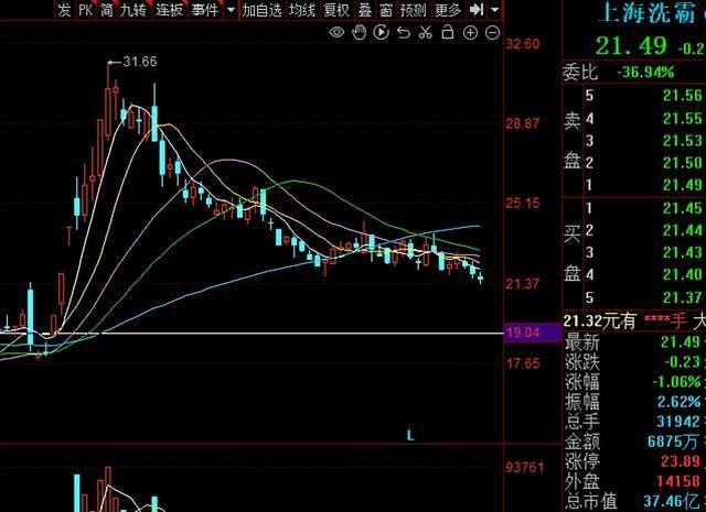 4月18日收盘,上海洗霸的股价是21.49元,两个月时间,相较此前高点回调了30%。