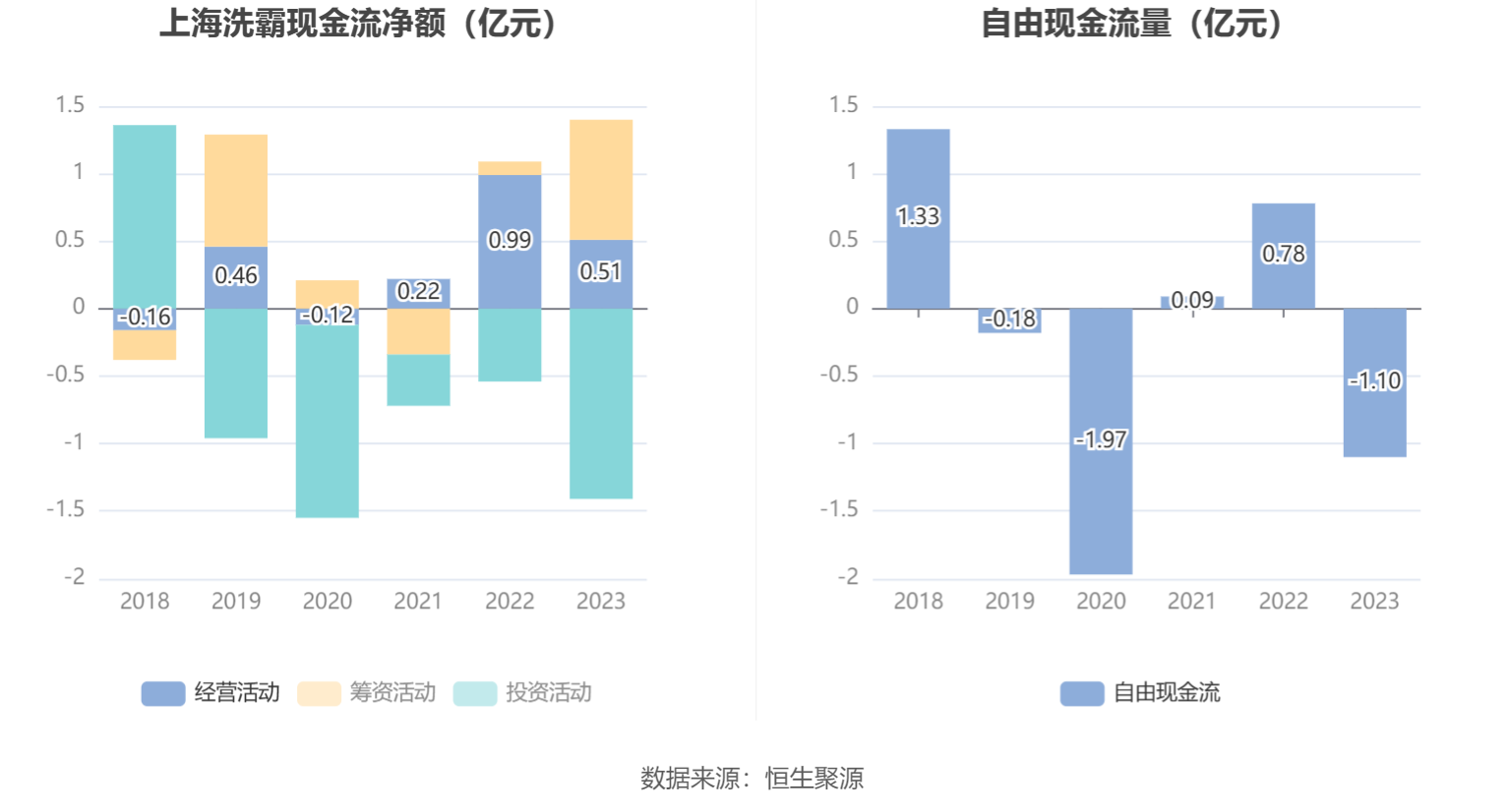 进一步统计发现,2023年公司自由现金流为-1.10亿元,上年同期为0.78亿元。