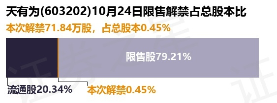天有为(603202)71.84万股限售股将于10月24日解禁,占总股本0.45%