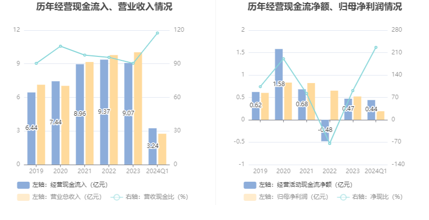 2024年第一季度,公司营业收入现金比为117.50%,净现比为226.37%。