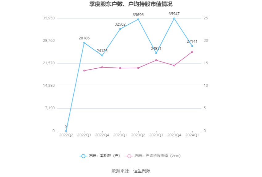 筹码集中度方面,截至2024年一季度末,公司股东总户数为2.71万户,较上年末下降了8806户,降幅24.50%;户均持股市值由上年末的14.55万元上升至17.59万元,增幅为20.89%。