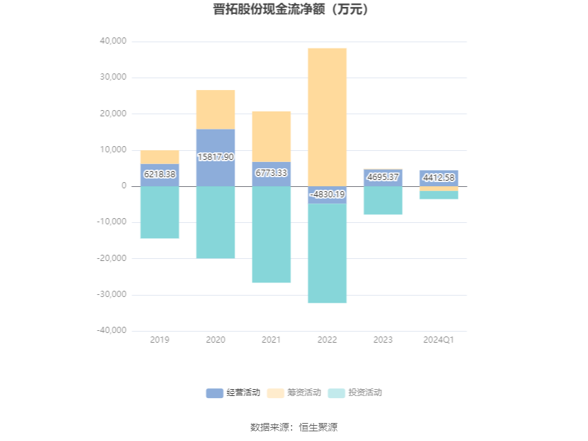 2024年第一季度,公司经营活动现金流净额为4412.58万元,同比增长72.99%,主要系本报告期销售商品、提供劳务收到的现金增加所致;筹资活动现金流净额-1290.32万元,同比减少112.53万元;投资活动现金流净额-2262.46万元,上年同期为1345.85万元。