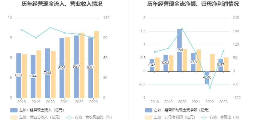 2023年,公司营业收入现金比为90.46%,净现比为91.12%。