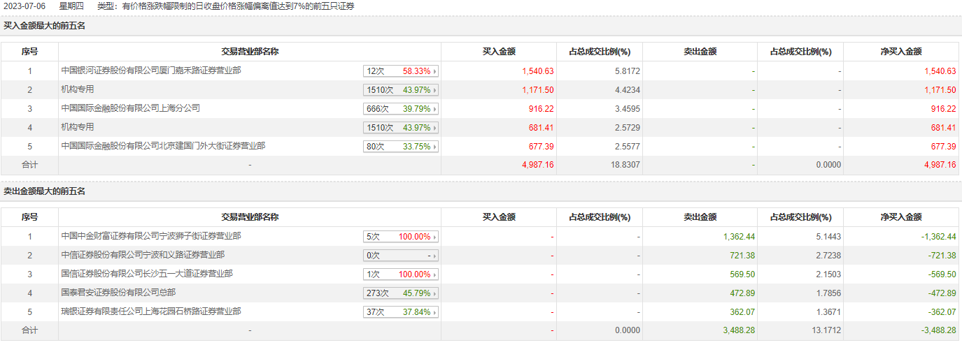 比依股份7月6日涨停,龙虎榜数据显示,上榜营业部席位全天成交8475.44万元,占当日总成交金额比例为32%。其中,买入金额为4987.16万元,卖出金额为3488.28万元,合计净买入1498.88万元。