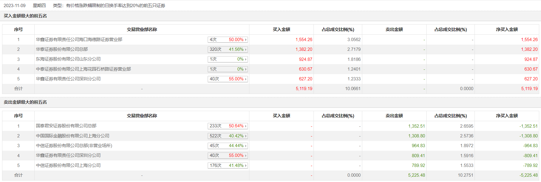 具体来看,知名游资现身龙虎榜,炒股养家(华鑫证券海口海德路证券营业部)、华泰证券总部分别买入1554.26万元、1382.20万元;国泰君安证券总部、中国国际金融上海分公司分别卖出1352.51万元、1308.80万元。