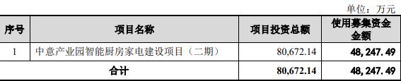 本次向特定对象发行A股股票募集资金总额不超过48,247.49万元(含),扣除发行费用后的募集资金净额拟用于中意产业园智能厨房家电建设项目(二期)。