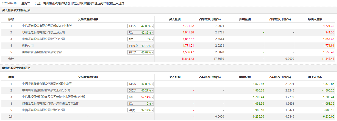 中贝通信7月18日涨停,龙虎榜数据显示,上榜营业部席位全天成交1.81亿元,占当日总成交金额比例为26.81%。其中,买入金额为1.18亿元,卖出金额为6235.09万元,合计净买入5613.34万元。