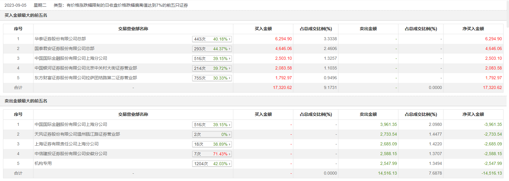 具体来看,机构合计净卖出2547.99万元。此外,中国国际金融上海分公司、天风证券温州瓯江路证券营业部分别卖出3961.35万元、2733.54万元;华泰证券总部、国泰君安证券总部分别买入6294.90万元、4646.06万元。