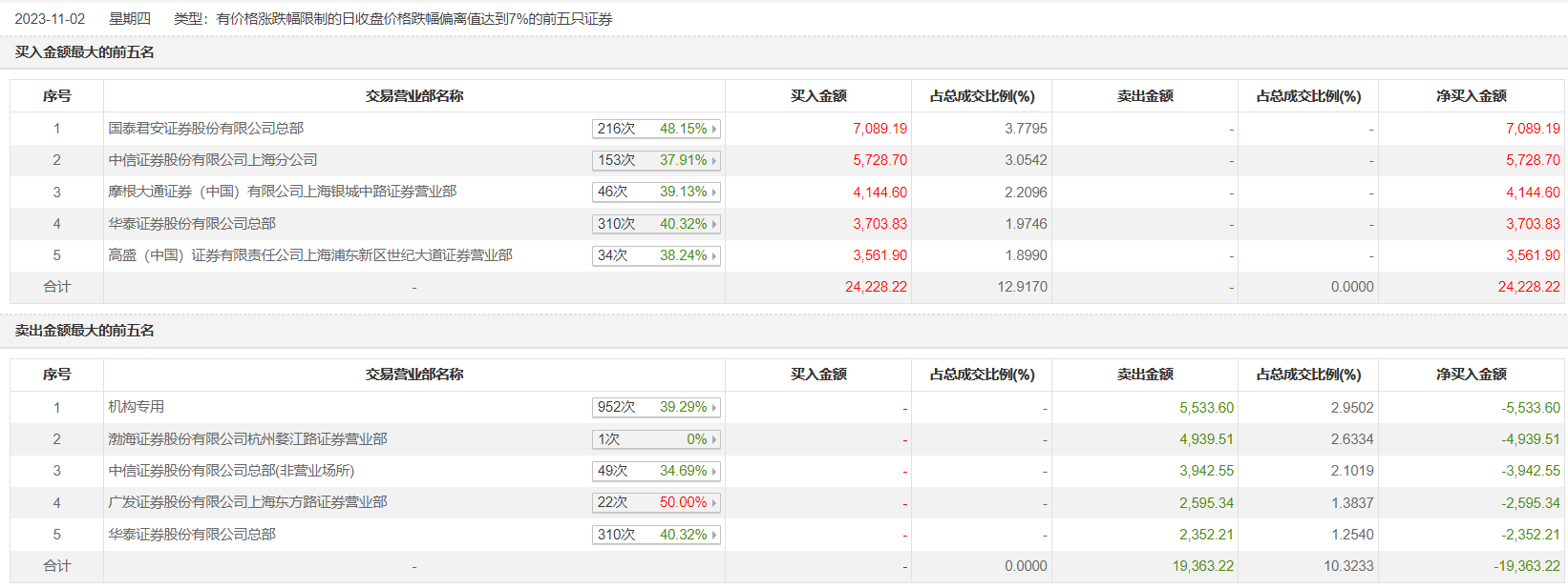 11月2日跌8.56%,成交额18.76亿元,换手率14.90%,盘后龙虎榜数据显示,一机构净卖出5533.60万元。