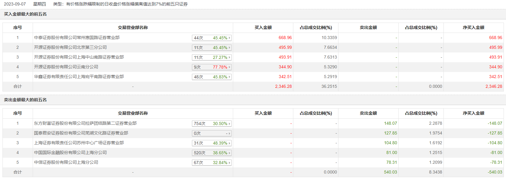 9月7日,爱丽家居今日涨停,龙虎榜数据显示,上榜营业部席位全天成交2886.31万元,占当日总成交金额比例为44.6%。其中,买入金额为2346.28万元,卖出金额为540.03万元,合计净买入1806.25万元。