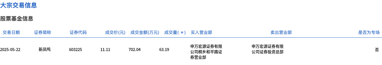 新凤鸣今日大宗交易平价成交63.19万股,成交额702.04万元