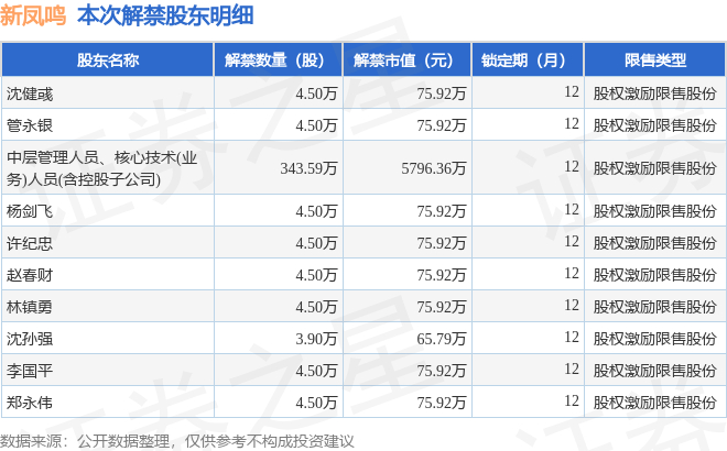 新凤鸣(603225)383.49万股限售股将于10月16日解禁,占总股本0.25%