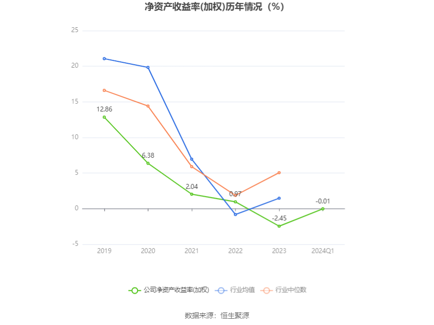数据显示,2024年第一季度公司加权平均净资产收益率为-0.01%,较上年同期基本持平;公司2024年第一季度投入资本回报率为-1.17%,较上年同期增长0.15个百分点。