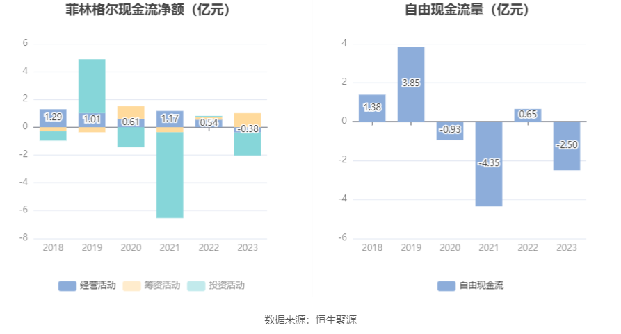 进一步统计发现,2023年公司自由现金流为-2.50亿元,上年同期为0.65亿元。