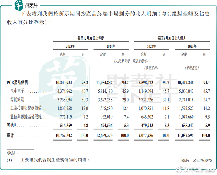 在消费电子与工业控制领域,景旺电子同样构筑了护城河。全球前十大智能手机品牌中,七家与其建立合作关系,其折叠屏手机的刚挠结合板、AR眼镜的超薄软板等高端产品,成功打破海外垄断;工业控制与医疗设备领域表现更为强劲,2025年前三季度收入同比激增46.8%,形成“汽车为核、多领域协同”的稳固业务格局。