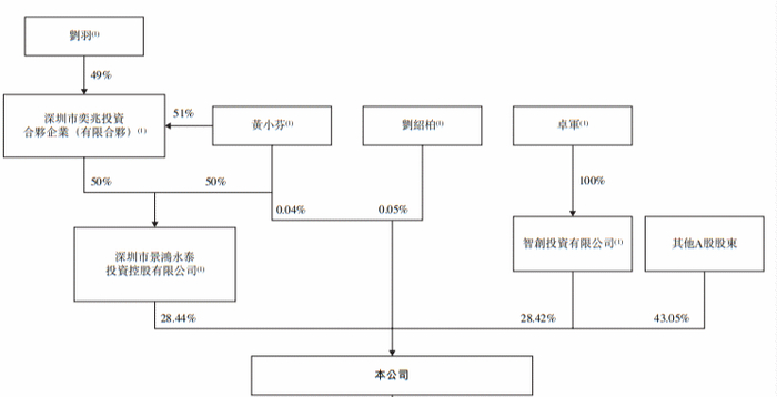刘绍柏与黄小芬为夫妻关系,刘羽为两人儿子。刘绍柏为公司的创始人、董事会主席兼非执行董事,黄小芬及卓军为公司非执行董事,刘羽为公司执行董事兼首席执行官。