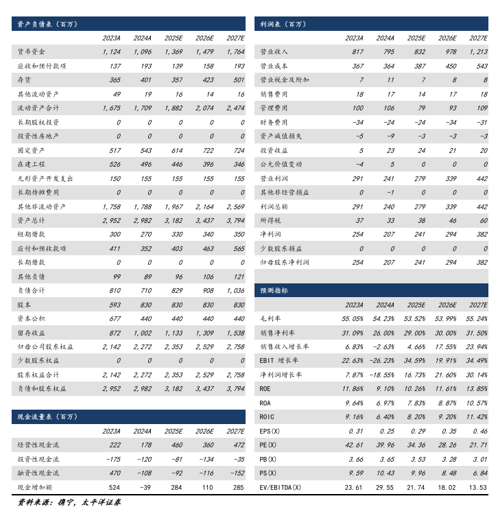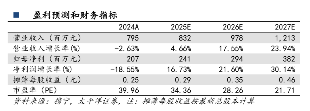 我们预测公司2025/26/27年收入为8.32/9.78/12.13亿元,归母净利润为2.41/3.94/3.82亿元,对应当前PE为34/28/22X,考虑到公司持续加码研发,有望驱动公司加速成长,且制剂业务将于年内开始贡献增量收入,持续给予“买入”评级。