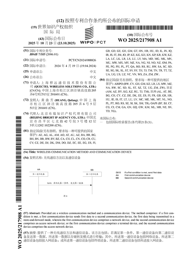 移远通信公布国际专利申请:“无线通信方法以及通信设备”