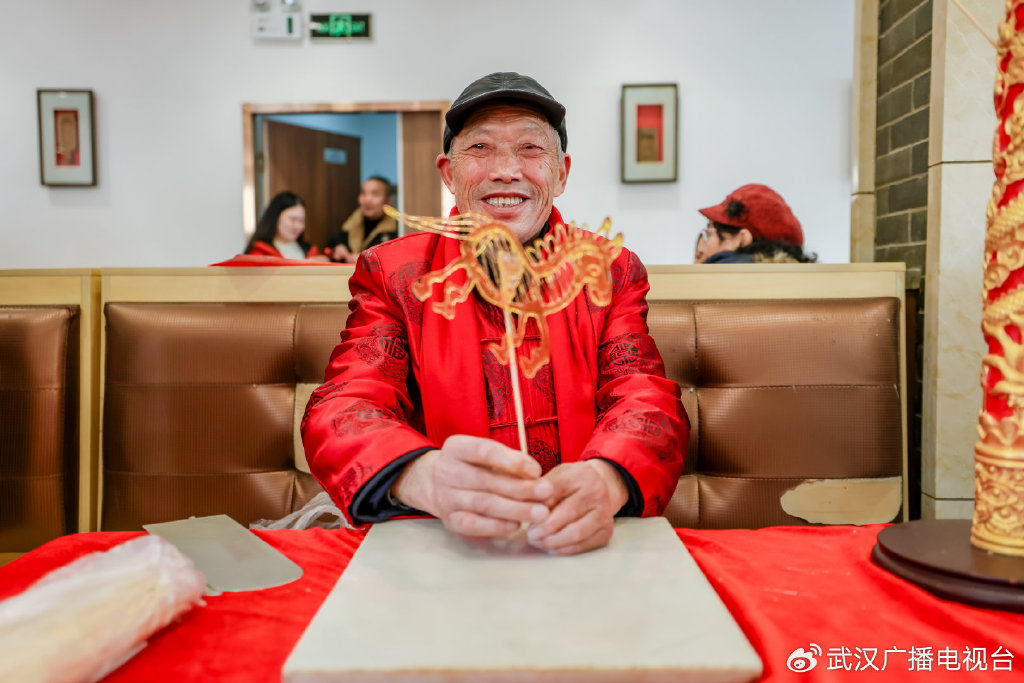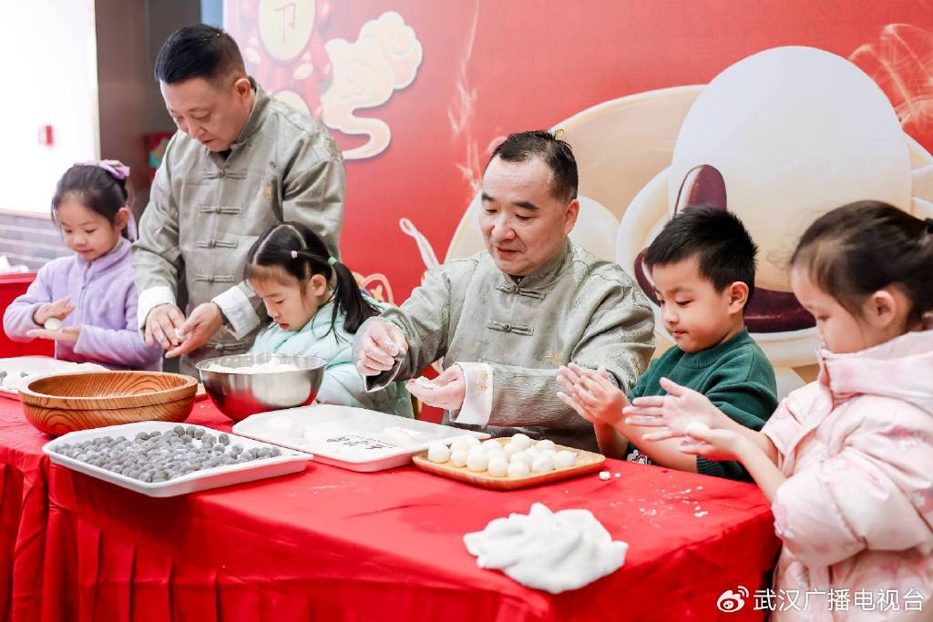 在欢乐喜悦的湖北大鼓鼓声中,民俗互动区也格外热闹。书法大师即席泼墨挥毫,笔锋流转间,一个个饱满圆润的“福”字力透纸背,将新春的祝福凝于纸上;老艺人现场“画糖马”,熬得金黄的糖稀在石板上流转,转眼就勾勒出奔腾的马形;红灯笼下悬着的谜条随风轻晃,猜中灯谜的市民笑意盈盈地兑换着彩头;而最受小朋友欢迎的,还属非遗传承人李杰和龚学平的案台,孩子们正围着他,聚精会神地学着制作汤圆。这些老手艺与新年俗的碰撞,让汤圆节成了一场老少皆宜的文化盛宴。