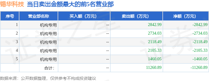 12月23日锡华科技(603248)龙虎榜数据:机构净卖出1.13亿元