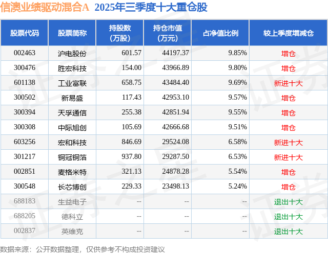 根据2025基金Q3季报公募基金重仓股数据,重仓该股的公募基金共13家,其中持有数量最多的公募基金为信达澳亚基金的信澳业绩驱动混合A。信澳业绩驱动混合A目前规模为7.13亿元,最新净值1.7776(12月17日),较上一交易日上涨6.53%,近一年上涨155.59%。该公募基金现任基金经理为刘小明。