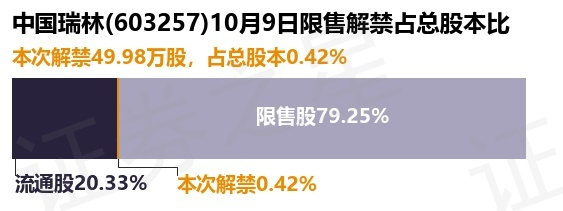 中国瑞林(603257)49.98万股限售股将于10月9日解禁,占总股本0.42%