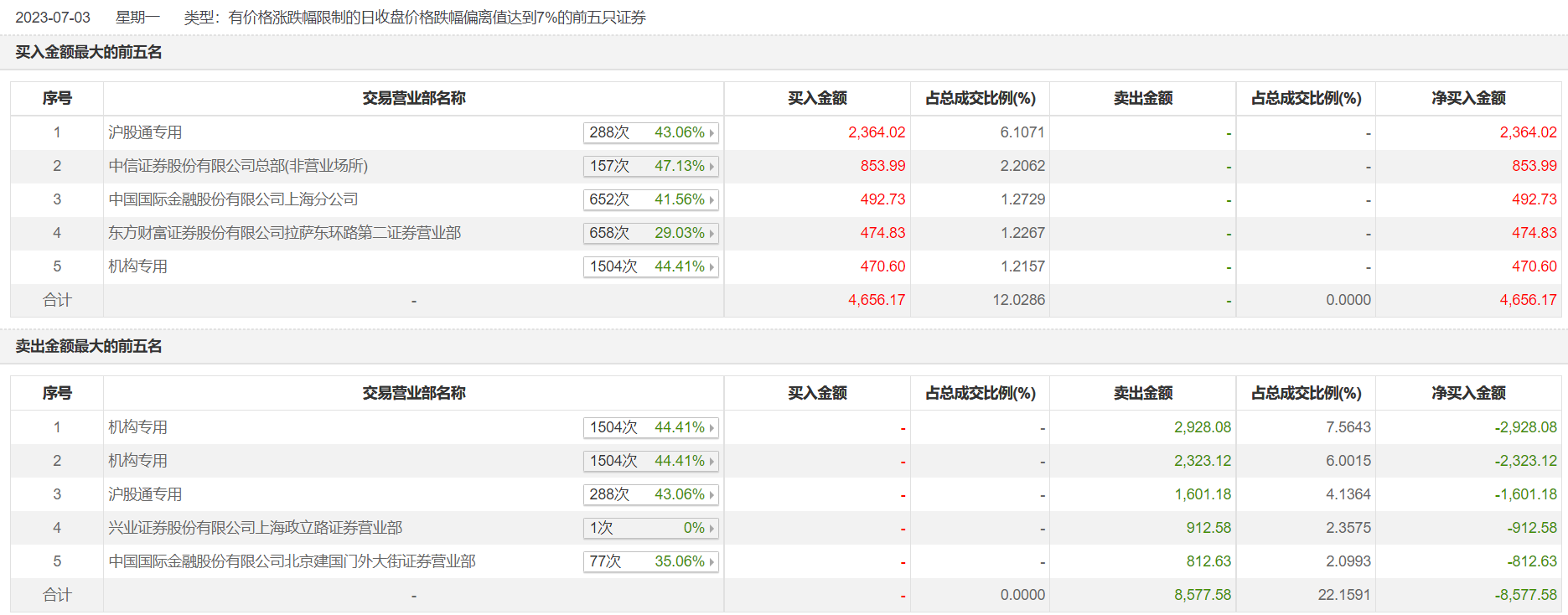 电魂网络7月3日跌停,龙虎榜数据显示,上榜营业部席位全天成交1.32亿元,占当日总成交金额比例为34.19%。其中,买入金额为4656.17万元,卖出金额为8577.58万元,合计净卖出3921.41万元。