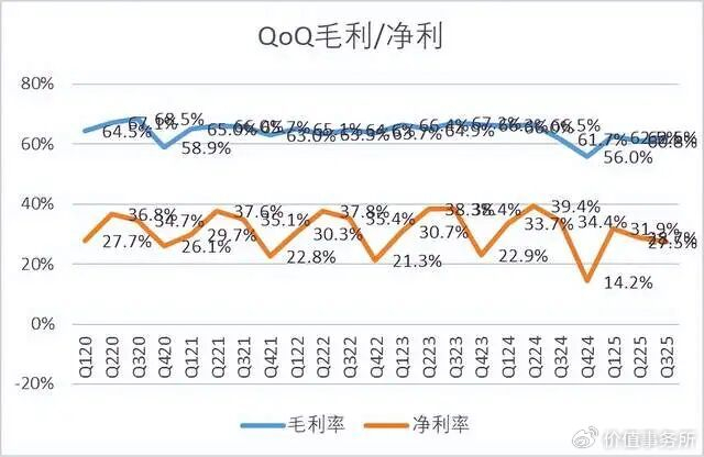 Q3净利率为27.5%,同比-6.9pct,环比-1.2pct,环比净利率继续下降的原因是汇兑损失,Q3相比Q2多亏了差不多2亿。