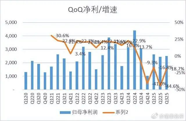 归母净利润为25.01亿,同比-18.7%,环比+2.5%,扣非净利润为25.13亿,同比-17.8%,环比+3.9%。