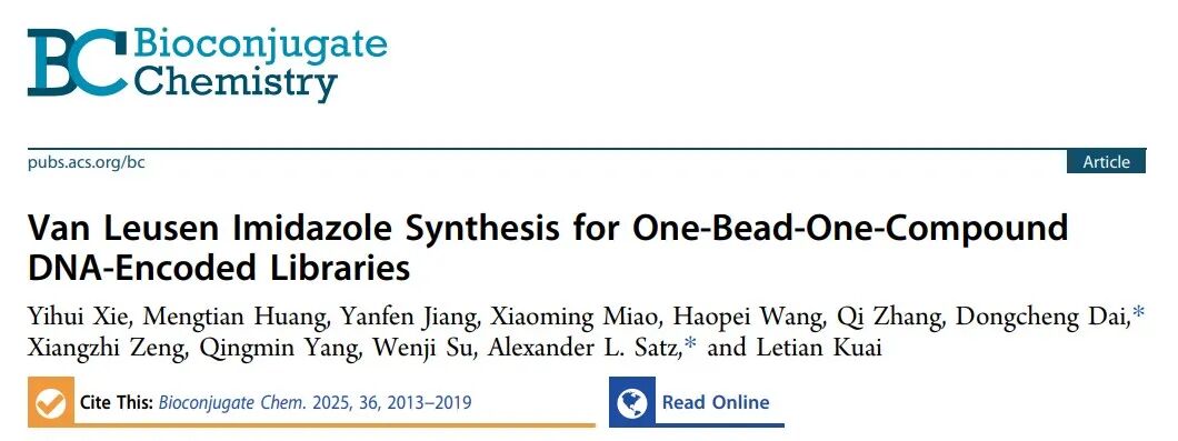 [1] Xie, Yihui, et al. "Van Leusen Imidazole Synthesis for One-Bead-One-Compound DNA-Encoded Libraries." Bioconjugate Chemistry (2025). DOI: 10.1021/acs.bioconjchem.5c00317