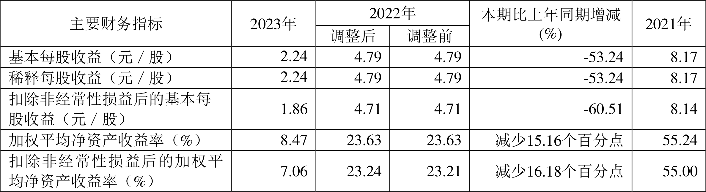 数据显示,2023年公司加权平均净资产收益率为8.47%,较上年同期下降15.16个百分点;公司2023年投入资本回报率为5.61%,较上年同期下降10.95个百分点。
