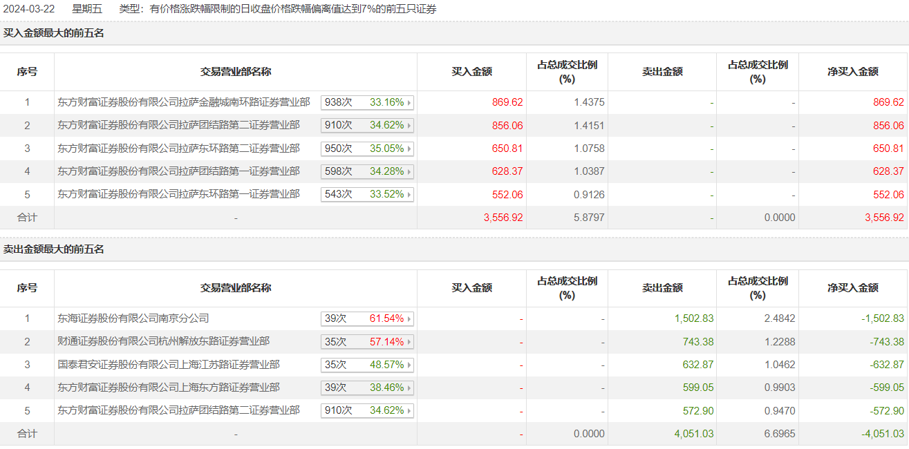 具体来看,知名游资现身龙虎榜,章盟主(国泰君安证券股份有限公司上海江苏路证券营业部)净卖出632.87万元。此外,东海证券南京分公司、财通证券杭州解放东路证券营业部分别卖出1502.83万元、743.38万元;东方财富证券拉萨金融城南环路证券营业部、东方财富证券拉萨团结路第二证券营业部分别买入869.62万元、856.06万元。