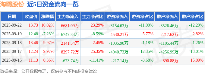9月22日的资金流向数据方面,主力资金净流入6681.09万元,占总成交额23.29%,游资资金净流出3154.63万元,占总成交额11.0%,散户资金净流出3526.46万元,占总成交额12.29%。