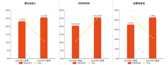 公司营业总收入为12.19亿元。归母净利润为5122.69万元。经营活动现金净流入为2.49亿元。