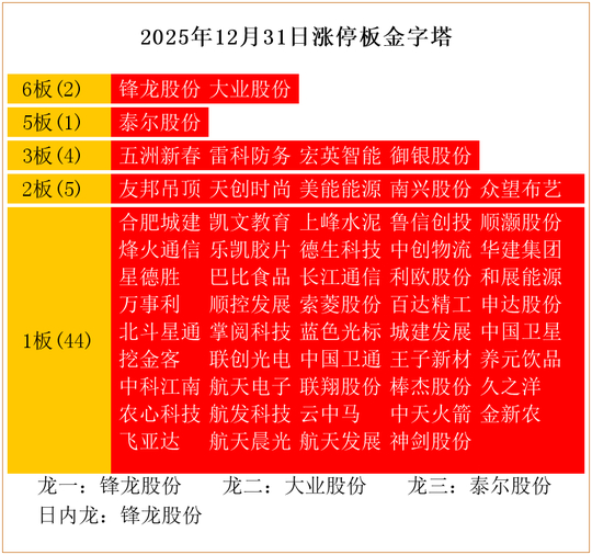 今天是2025年12月31日,我们来复盘一下今日的涨停板。