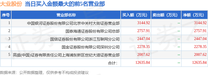 1月5日大业股份(603278)龙虎榜数据:游资北京中关村上榜